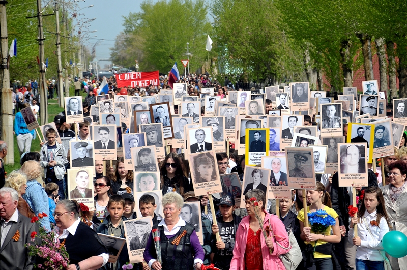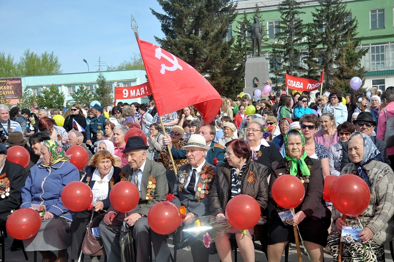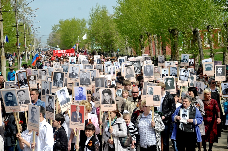К 10.30 площадь была заполнена людьми с портретами в руках. Яровое — активный участник акции «Бессмертный полк Алтая». Потомки погибших и умерших фронтовиков пришли на митинг, держа высоко над головой транспаранты с фотографиями героев. Здесь «глаза молодых солдат с фотографий увядших глядят».